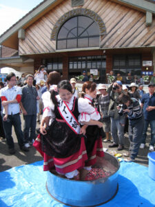 A major event in the area is the Ohasama Wine Festival. Here, Ohasama’s young wine maidens demonstrate grape crushing with their bare feet. This is a spectacle equal parts traditional and playful, imitating a European legend that says grapes crushed by a young woman make good wine.