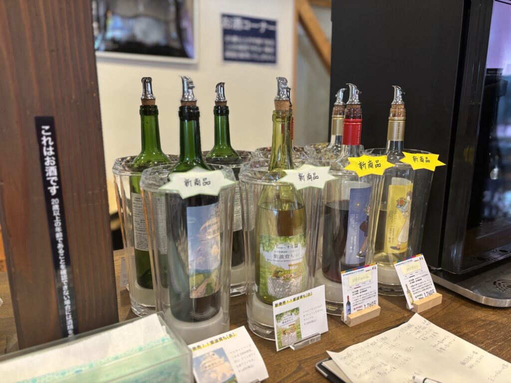 赤は寒冷地らしくライト~ミディアムが中心です。マスカットベーリーA2019はクセがなく、まろやかで後味が心地よいワイン。無料試飲のワインも日常の食卓になじむ味で、赤白ともに常備したい一本だと感じました。