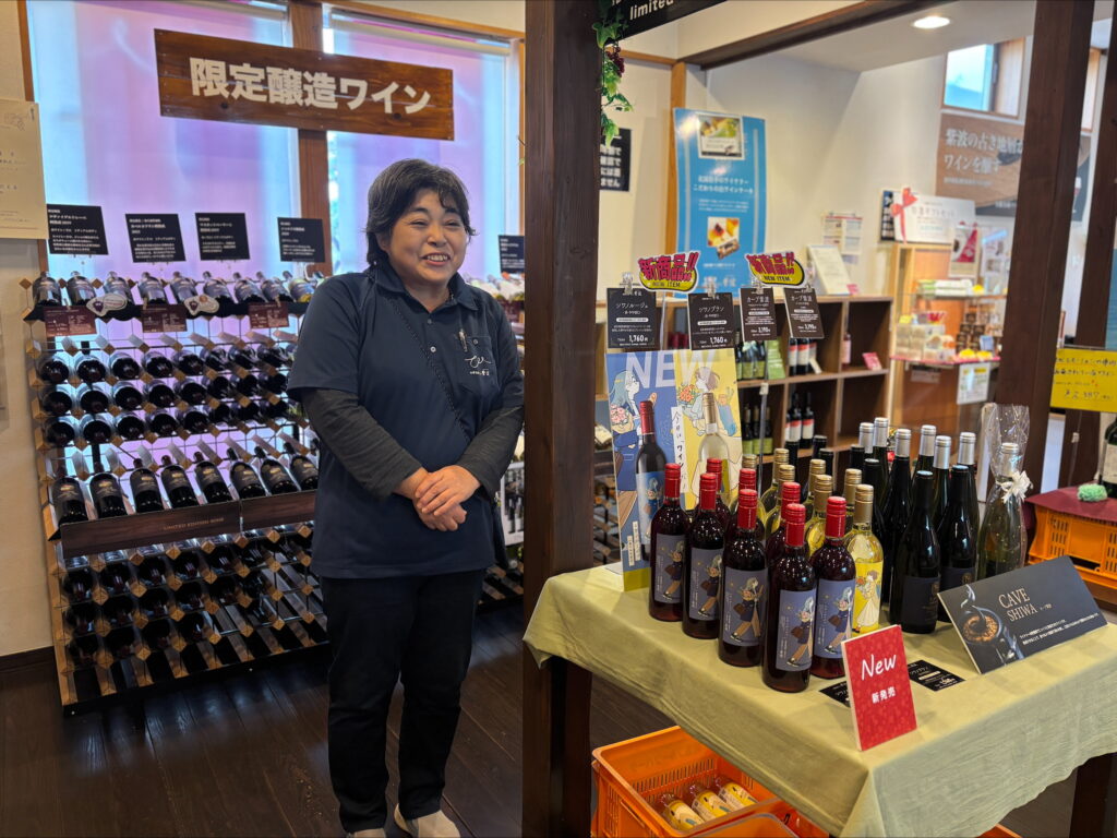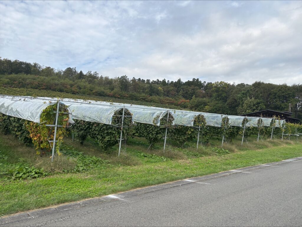 We were shown around by Ms. Sugawara. She’s a huge wine lover, and after retirement her passion only kept growing, so she started working here! She says that “good grapes are born from good fields,” revealing her trust and confidence in this land. Her message to young workers and her successors is “Instead of chasing trends, cherish what you care about right now, and keep sharing research and information about wine.”