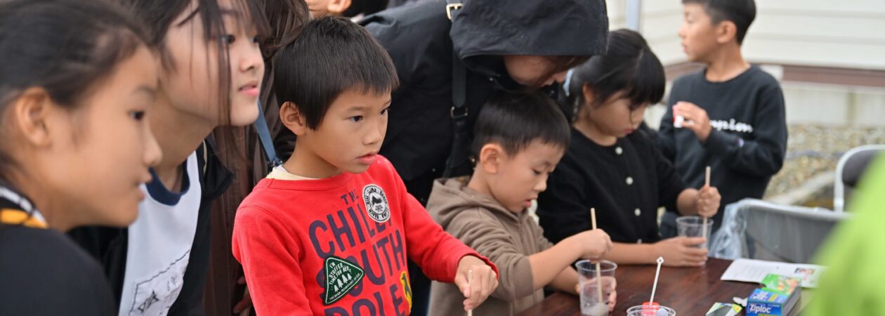 天文台と遊学館が協力し教育イベントを開催する際、目的は活動内容を伝えることが多い一方で、子どもや家族が科学的概念を楽しく考えさせる計画しています。例えば今回のフェスティバルでは、スライム作りブースやVR体験などを取り入れました。