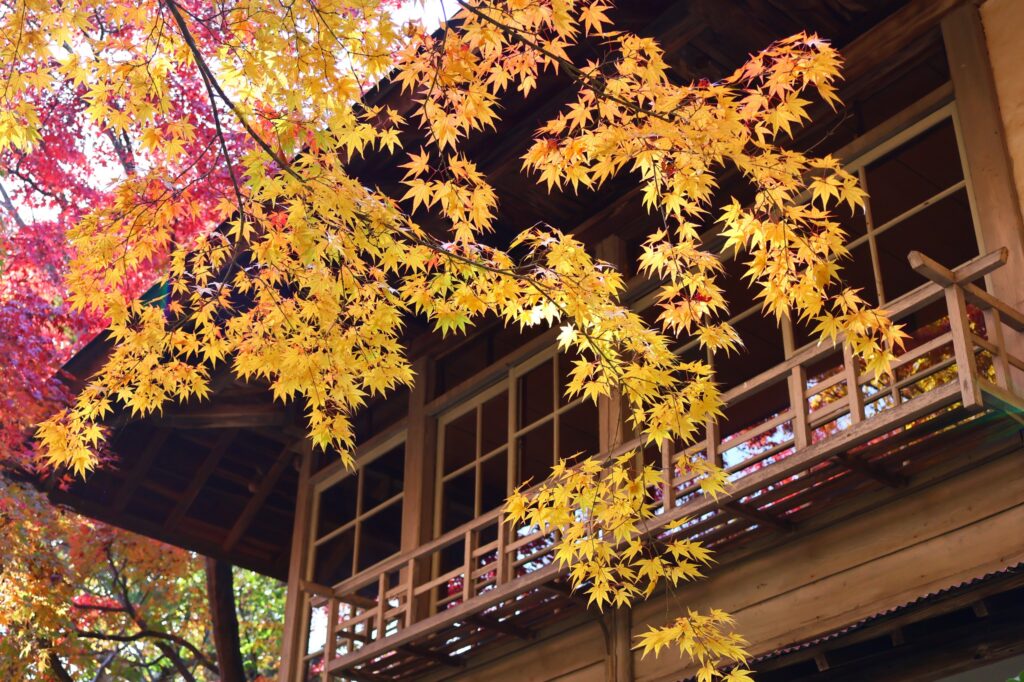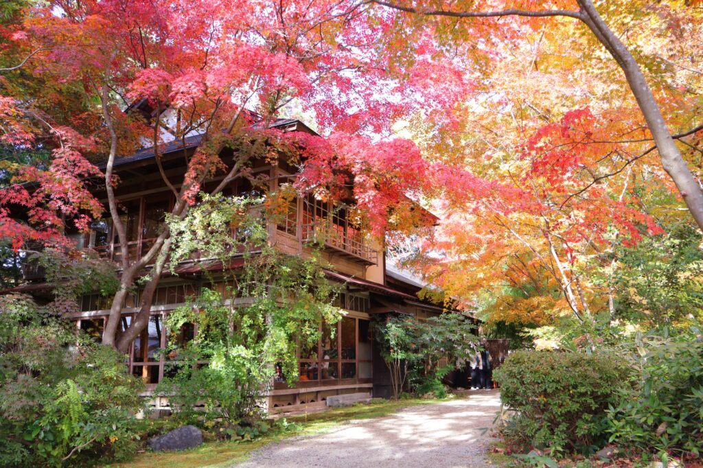 庭園は、四季折々の自然の美しさを楽しめるのも大きな魅力です。春には桜、夏には青々とした緑が美しく、秋には赤や黄色に色づいた葉が風情ある建物の窓ガラスに映り込み、格別の趣があります。冬になると静かな雪景色が広がり、建物が一層引き立つなど、一年を通して様々な表情を見ることができます。
